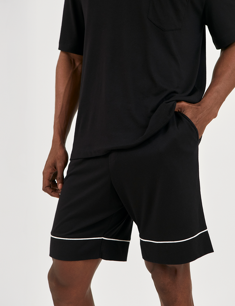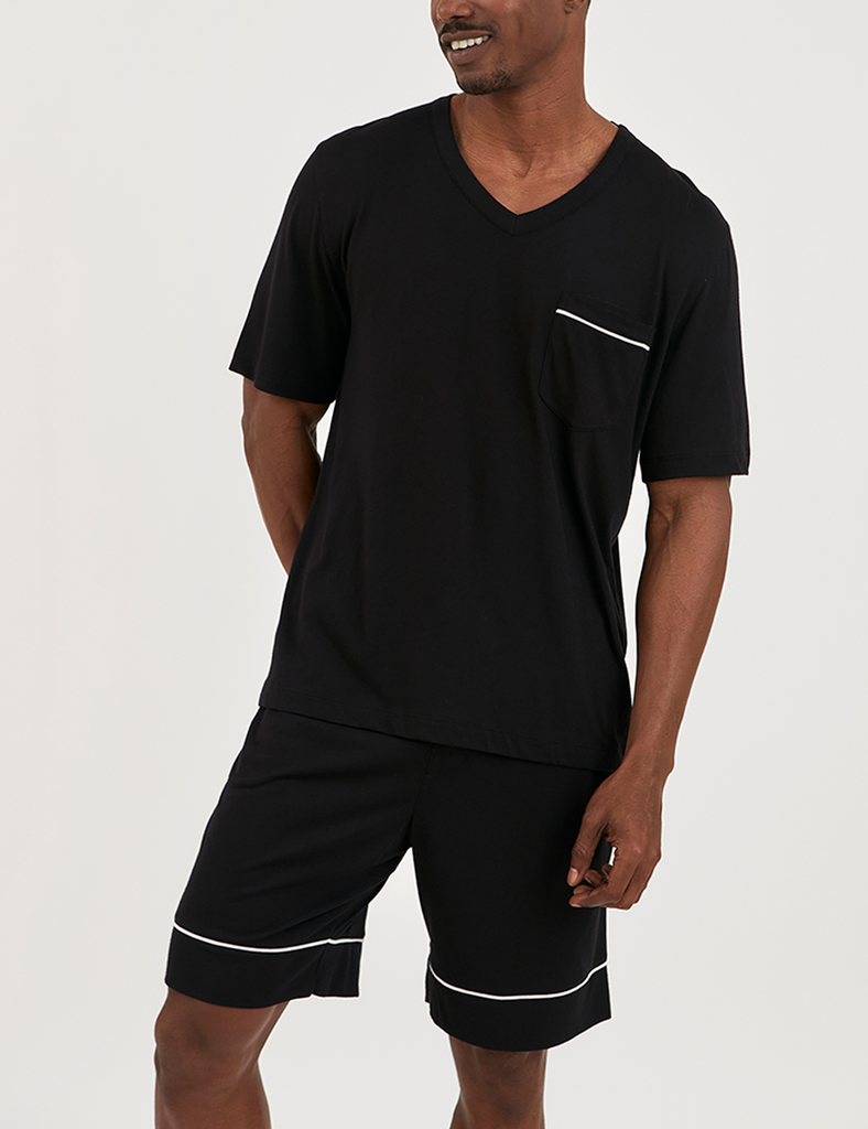 Give your little one the gift of comfort with the Noah Short PJ Set in Black. Designed with a flattering V-neckline and contrasting trim details on both the pocket and shorts, this sleepwear set combines style with everyday wearability. Perfect for cozy nights and an excellent seasonal gift choice.